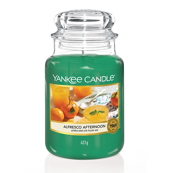 You are in: Home / Products / Candles / Yankee Candles / Large Jar Large Jar Alfresco Afternoon A picnic in the shade, surrounded by wildflowers and juniper buds with just a touch of nectarine swirling in the breeze. Baby Powder Black Coconut Sunset in paradise... rich coconut, cedarwood and island blossoms promise an evening of luxurious tranquility. Blush Bouquet Camellia Blossom Soft and peaceful — your favourite spot in the garden, enveloped in the luminous fragrance of camellia Calamansi Cocktail Cherry Blossom An enchanting armful of Spring's freshest blooms that turns any room pink and happy. Clean Cotton Sun-dried cotton combined with green notes, white flowers, and a hint of lemon. Coconut Splash Fluffy Towels The fresh scent of clean towels warm from the dryer with notes of lemon, apple, lavender and lily. Fresh Cut Roses An intoxicating English garden of fragrant heirloom roses. Homemade Herb Lemonade Your very own freshly-squeezed lemonade, made with a hint of ginger and garnished with herbs picked right from your garden. Mango Peach Salsa Midnight Jasmine Moonlit Blossoms A moonlit stroll with rich floral and berry notes takes an enchanting turn with mysterious, warm amber.
