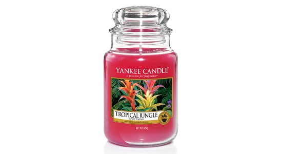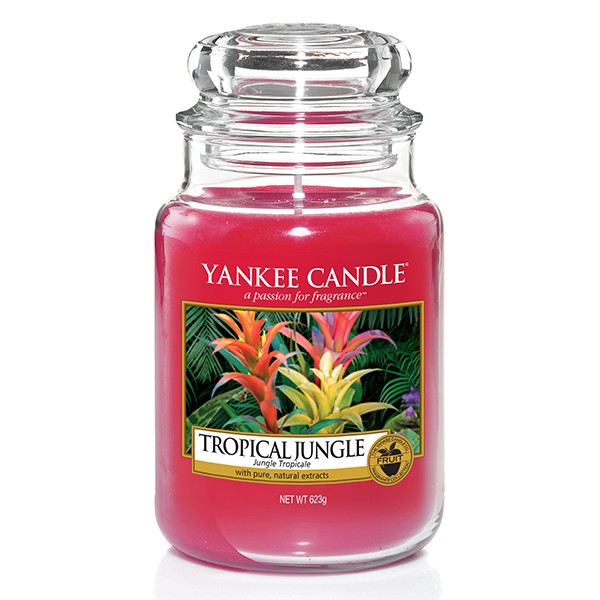 A sweet, lush mix of tropical fruits, tropical flowers and green jungle leaf.