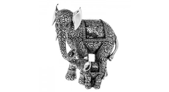 Silver Rococo Jumbo Elephant & Baby Ornament; In A Rose,Leaf & Flower Pattern and Mirror Mosaic.