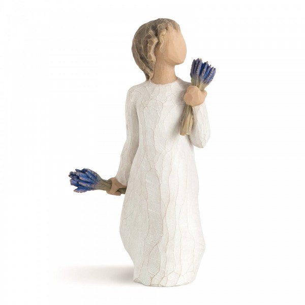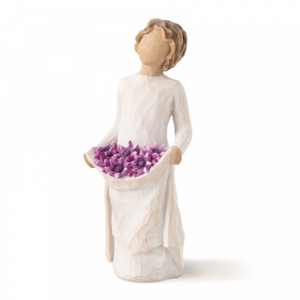 Artist Susan Lordi hand carves the original of each Willow Tree sculpture. Using family and friends as models, Susan tries to capture a moment in time, or express a feeling. Pieces are cast from her original carvings, and then individually painted by hand. Softly washed colours, carved and metal accents, and representative icons of nature mark Susan's work.