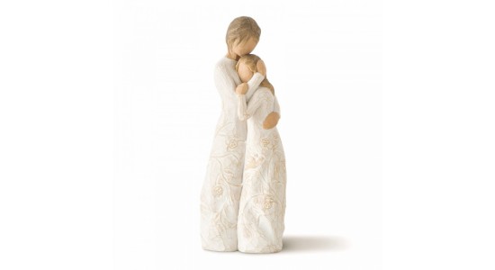 Willow Tree is an intimate line of figurative sculptures representing sentiments of love, closeness, healing, courage, hope...all the emotions we encounter in life. "The sentiment applies to any age... a child going away to camp, a teenager leaving for college... the message is the same. The intertwined images carved on the figures' dresses visually echo this sentiment. I understand this piece from both sides - having been a daughter, and having gone through the experience of raising a daughter to adulthood. I hope both mothers and daughters will connect to the emotions of this piece." - Susan Lordi. Beautiful for Mothers Day .The item is made in resin and hand-painted with lead-free paint. Supplied in a branded gift box and a gift tag with sentiment 'Apart or together, always close to me'. Not a toy or children's product. Intended for adults only.