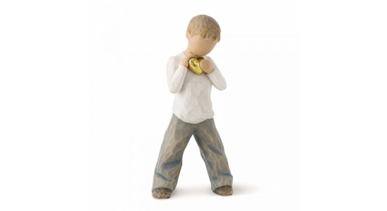 Willow Tree is an intimate line of figurative sculptures representing sentiments of love, closeness, healing, courage, hope...all the emotions we encounter in life. Heart of Gold was inspired by a young cancer patient at Children's Mercy Hospital in Kansas City, MO, USA, who was the son of close friends of Willow Tree artist, Susan Lordi. A young cancer patient with courageous spirit and kind smile, bringing so much love, joy and comfort to others. Susan Lordi and Enesco will donate 65p to Great Ormond Street Hospital Children's Charity for every Heart of Gold figure sold. The item is made in resin and hand-painted with lead-free paint. Supplied in a branded gift box and a gift tag with sentiment 'You will always have my heart'. Not a toy or children's product. Intended for adults only.