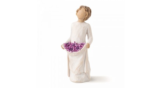Willow Tree is an intimate line of figurative sculptures representing sentiments of love, closeness, healing, courage, hope...all the emotions we encounter in life. "I like to walk in the tangles of my garden and discover little jewels that pop up or volunteer through the weeds. Usually not planned or cultivated, these colourful surprises never fail to make me smile. Like a spur-of-the-moment visit from a good friend who makes me laugh, these spontaneous happenings, however simple, can bring so much joy." - Susan Lordi. The item is made in resin and hand-painted with lead-free paint. Supplied in a branded gift box and a gift tag with sentiment 'You're simply a joy in my life'. Not a toy or children's product. Intended for adults only.