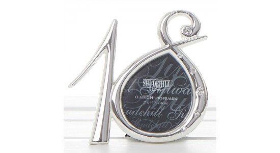 Silver finished number 18 shaped photo frame with 6 diamante jewels. Holds a 2 x 5" portrait photograph.