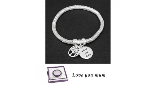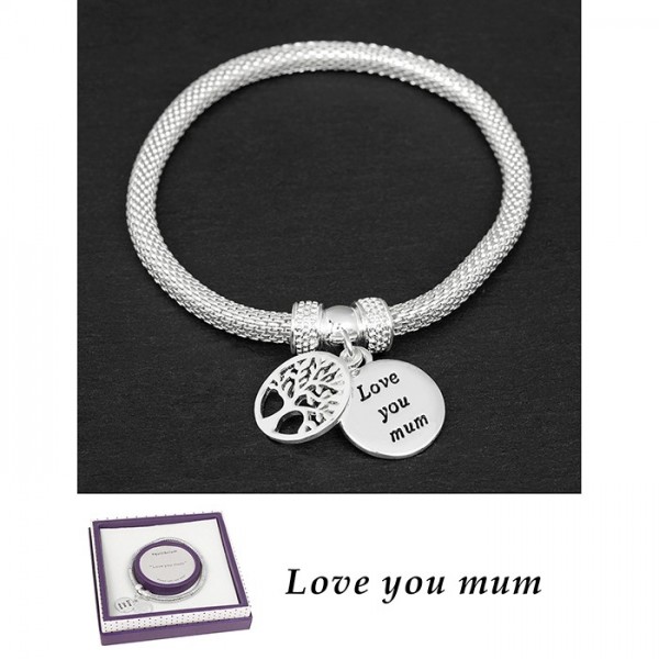 Silver plated stretchy mesh tree of life message bracelet, a perfect gift for a special Mum.