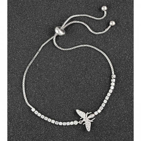 Honey Bee Pave Platinum Plated Friendship Bracelet(No Desc)