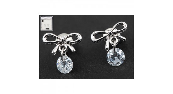 A beautiful delicate platinum plated bow stud with a dangly gemstone to add a little sparkle.