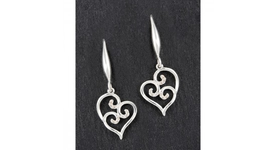 Silver plated earrings, beautifully swirled into sparkly hearts.