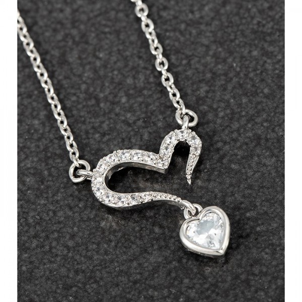 Open Heart Dangly Crystal Platinum Plated Necklace